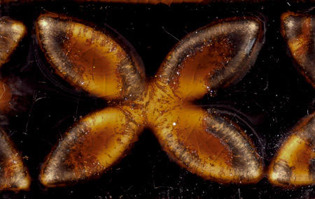 Aventurine is an amber glaze with crystal flecks, that breaks golden over texture and pools a darker shade in recessed areas.