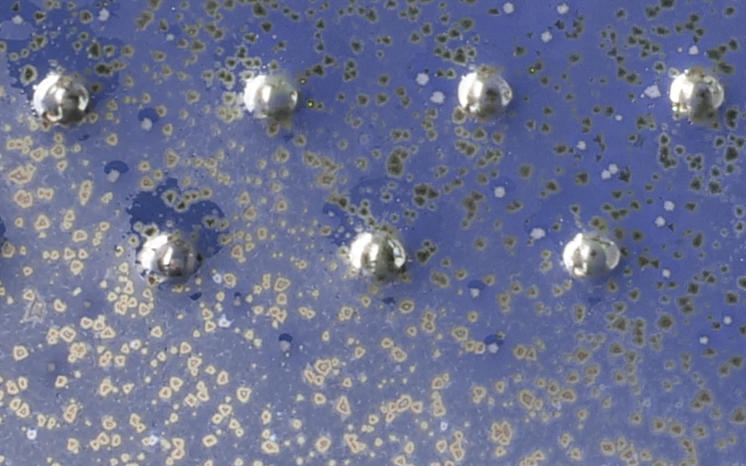 Blue Spark is a glossy, royal blue glaze which develops small triangular dark gray metallic crystals that make this glaze look like lapis lazuli.