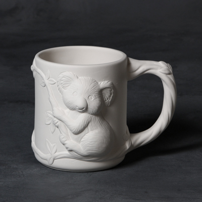 MB1479 Koala Mug in ready to paint, cone 04 ceramic bisque by Mayco Colors5.75 H x 3.75 W x 4.25 D Case of 6 (also available individually)