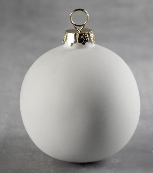 C18470 Round Ball Ornament Case of 12 4 Dia. Low-Fire, Ready to Paint, Ceramic Bisque. This bisque has been fired to a cone 04 and is ready to paint and fire to a cone 06