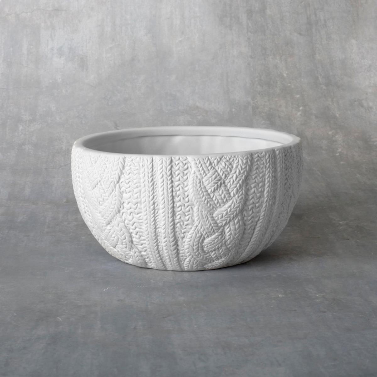 38319 Cozy Sweater Cereal Bowl in ready to paint, cone 04 ceramic bisque by Duncan 6.25 x 6.25 x 3.25