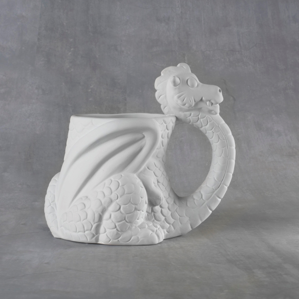 38106 Dragon Mug 12 oz in Ceramic Cone 04 Bisque By Duncan All of our bisque is fired to a cone 04 and is ready to paint. 6.25 x 3.75 x 5.75 This item is unpainted. You are purchasing an unfinished, Ready to Paint, Piece of Ceramic Pottery