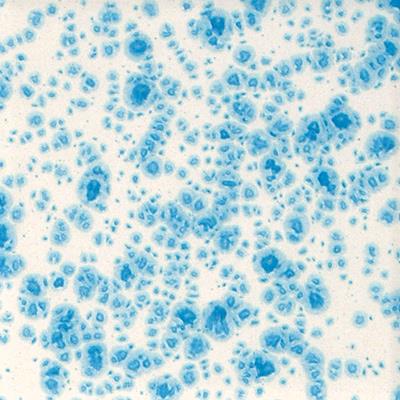 Cone 06: Dutch Enamelware is an opaque white base glaze with bright blue crystals.
