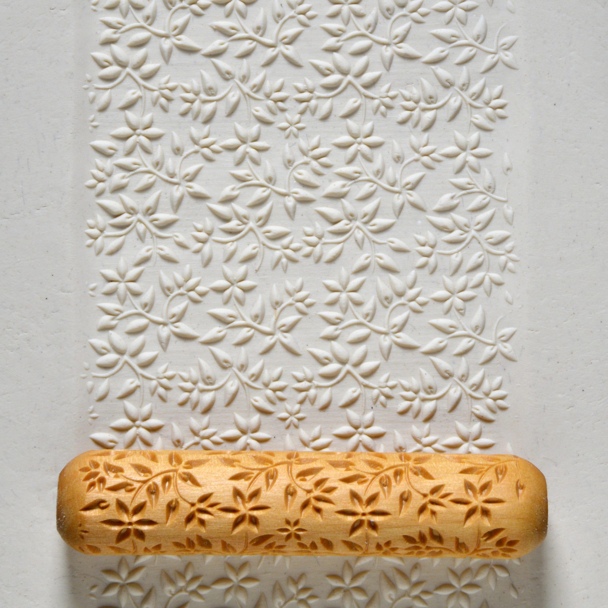 Our rollers are made from wood that is precision carved to make deep beautiful impressions. The rollers are also beveled carved, allowing them to release easily from clay.