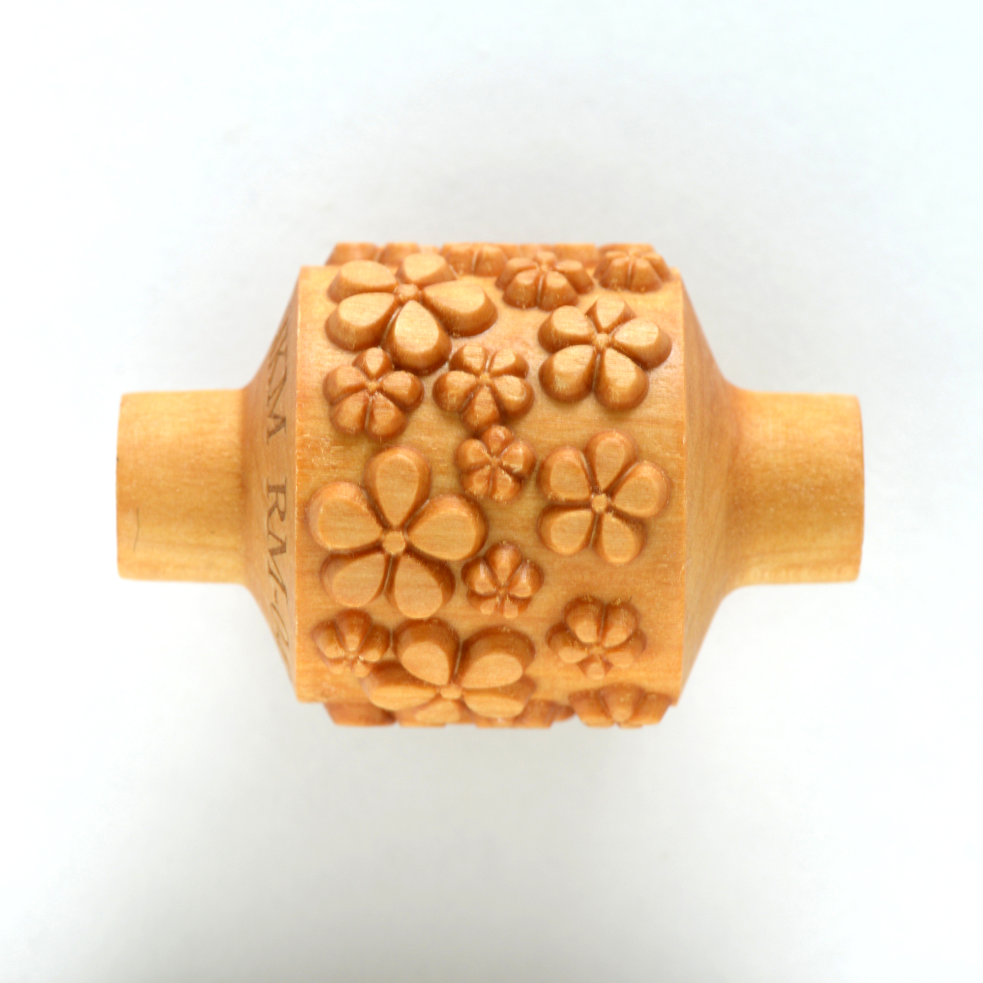 RM-043 – Flowers Medium Handle Roller RM – Medium Handle Rollers have a rolling design face that is 3 cm (1.2 inch) across. Our Large Handle Rollers are beautifully carved, have unique designs, release well, and have a smooth carved texture. Our RM Rollers are made from wood and finished with tung oil to ensure durability…