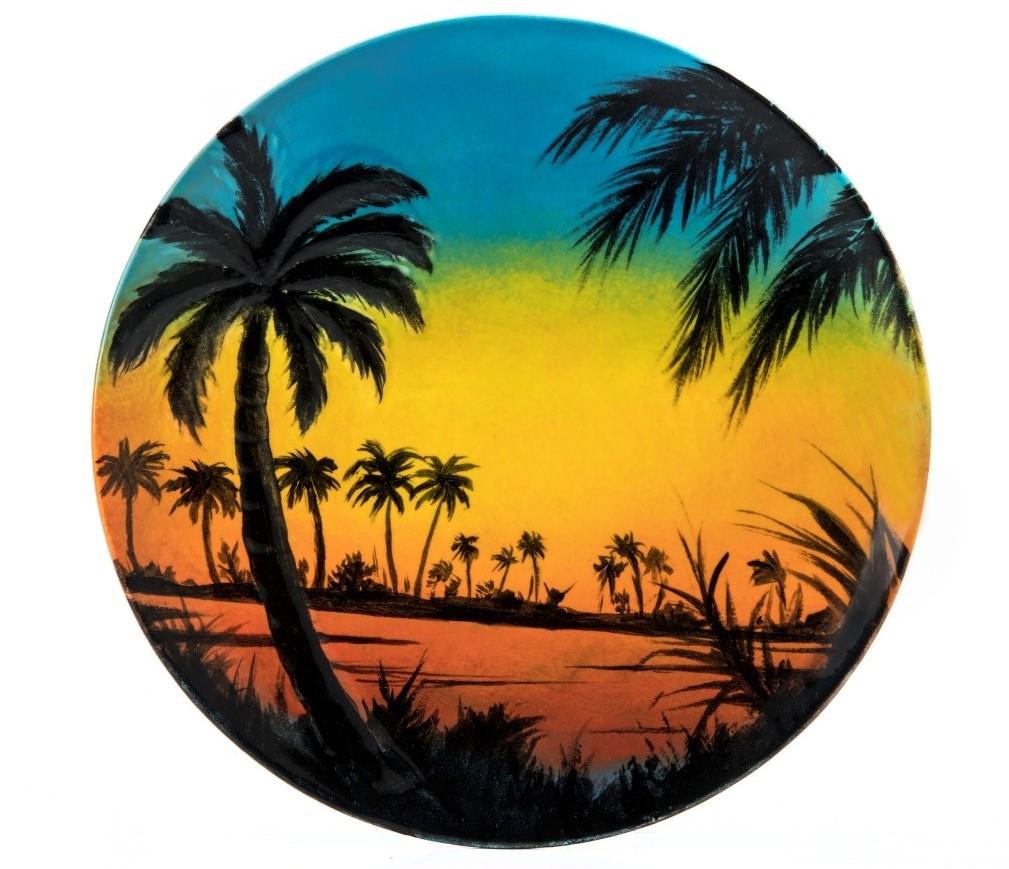 Calm, serene, beautiful is how to describe a tropical Hawaiian sunset and you can recreate this incredible blue Hawaiian sight on the Duncan® Palm Tree Plate. An already-raised palm tree helps guide your design.