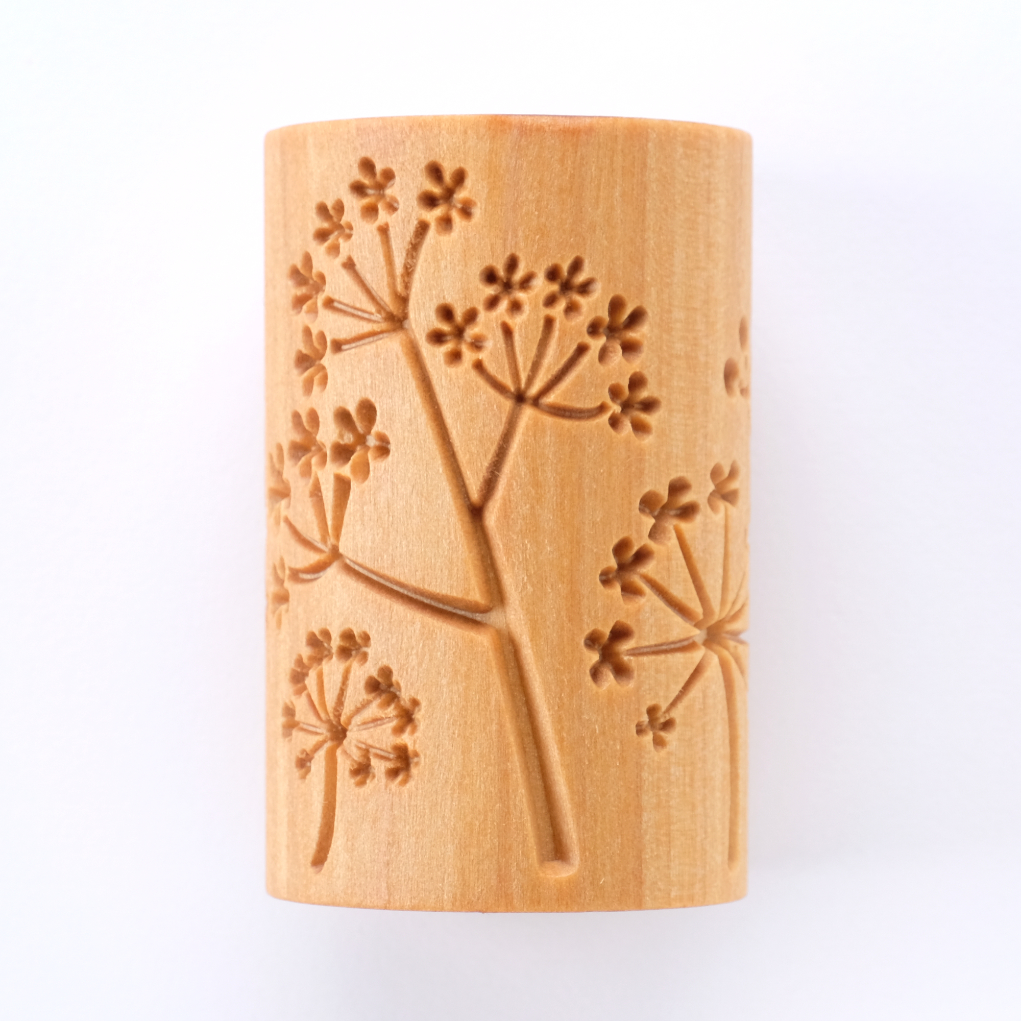 RL-042 Prairie Flowers Large Handle Roller RL – Large Handle Rollers have a rolling design face that is 6 cm (2.4 inch) across. Our Large Handle Rollers are beautifully carved, have unique designs, release well, and have a smooth carved texture. Our RL Rollers are made from wood and finished with tung oil to ensure durability…