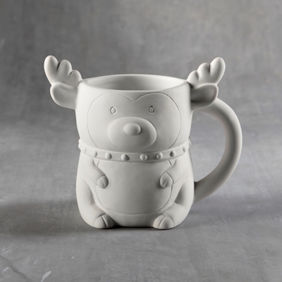 35987-C-6 REINDEER MUG – in ready to paint – cone 04 Ceramic Bisque by Duncan Case of 6 6.15 x 3.85 x 4.95