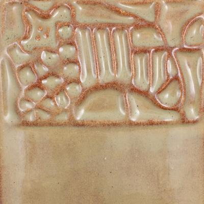 Cone 06: Sahara Sands is a glossy, variegated tan glaze with an orangish brown stain.