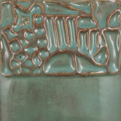 Cone 6: Color changes to a semi-translucent, variegated olive green/blue that breaks over texture and pools blue. Enhanced mobility. Surface issues may occur.