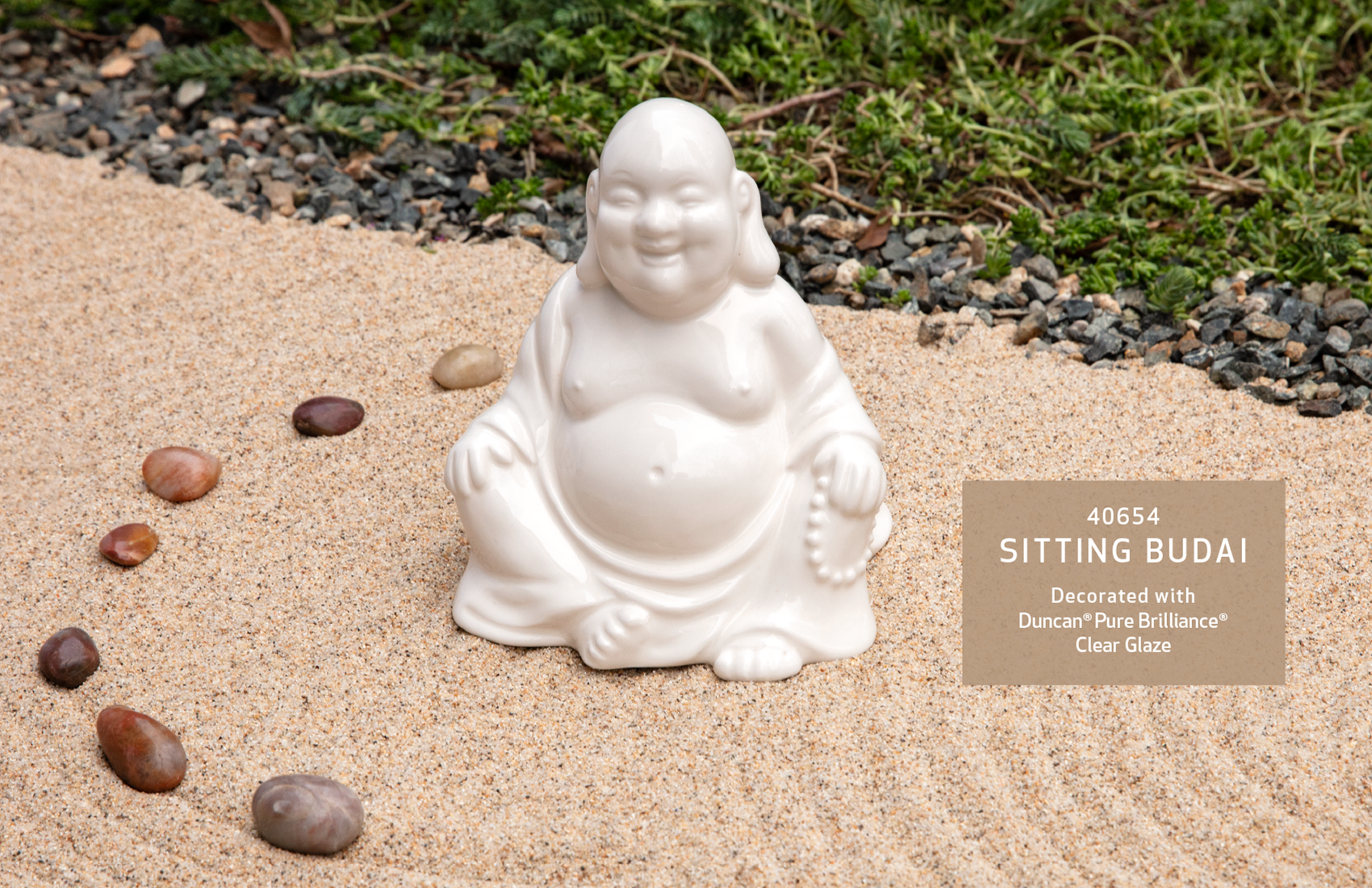 40654 Sitting Budai in ready to paint, cone 04, ceramic bisque 5 x 4.5 x 6