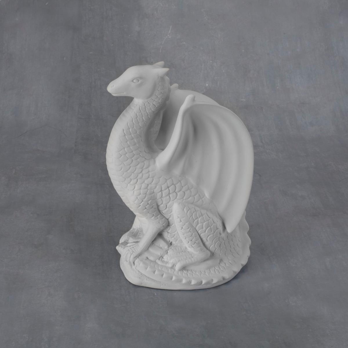 38428 Sitting Dragon in Ready to paint, cone 04 Ceramic Bisque by Duncan. All of our bisque is fired to a cone 04 and is ready to paint. 6.00 x 5.00 x 10.00 This item is unpainted. You are purchasing an unfinished, Ready to Paint, Piece of Ceramic Pottery