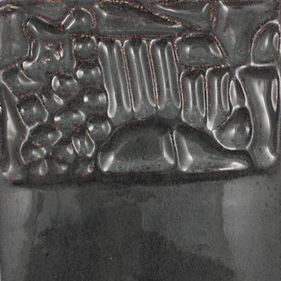 Cone 6: Color changes to a semi-translucent, variegated brown/blue that breaks over texture and pools blue. Enhanced mobility. Surface issues may occur.