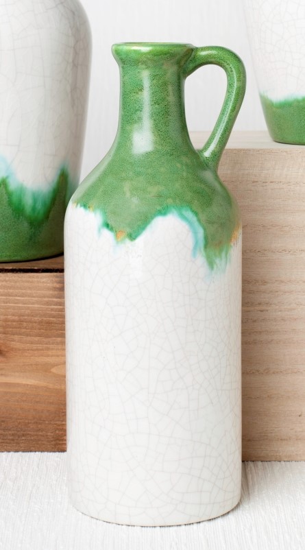 Brush three coats Marbled Celadon to handles and lip around opening of vase and the unpainted area at base. Stagger the paint and slightly brush into the Clear Crackle. Also brush 2- 3 coats to bottom of vase. Let dry.