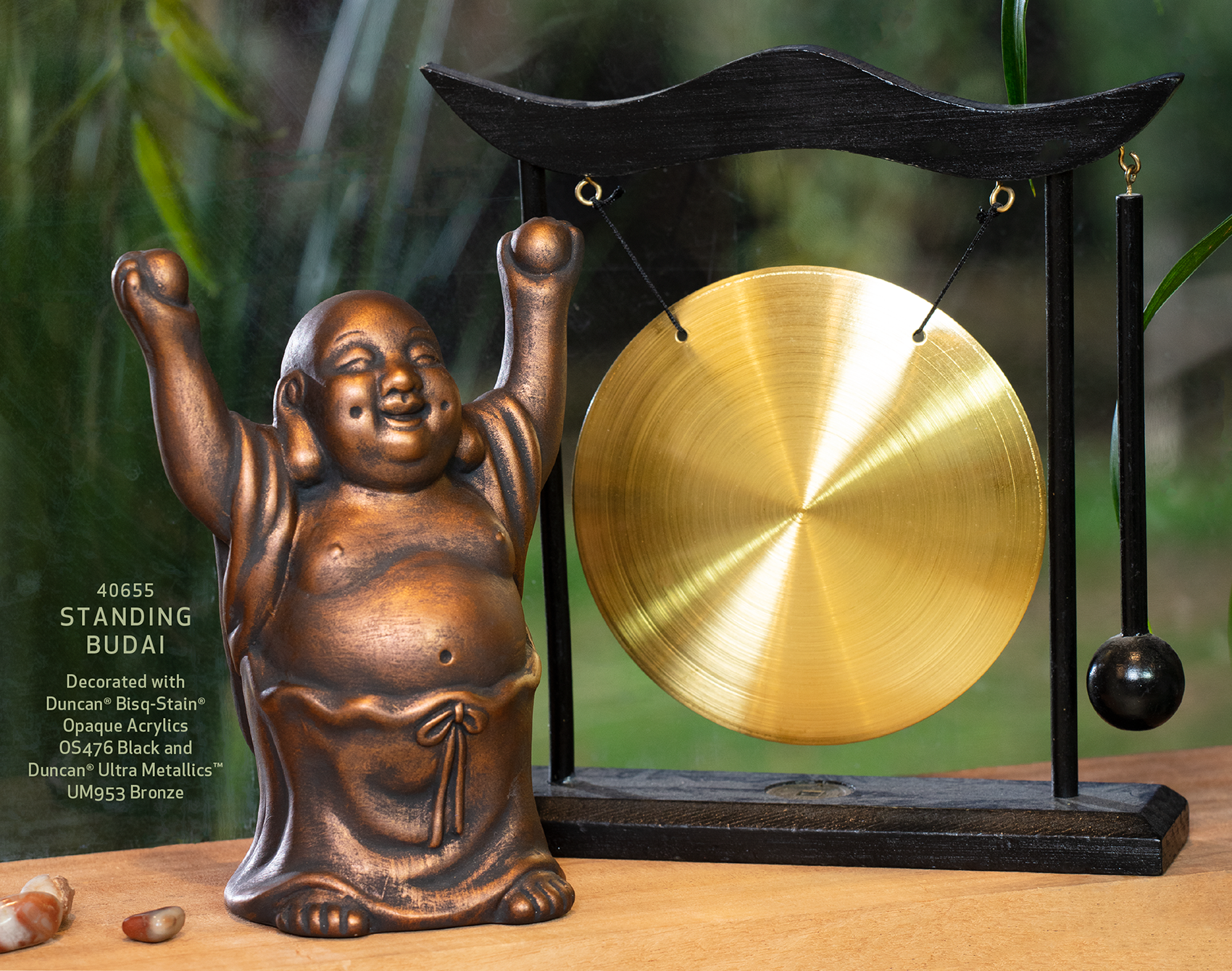 40655 Standing Budai in ready to paint, cone 04, ceramic bisque 5 x 3.75 x 6.5