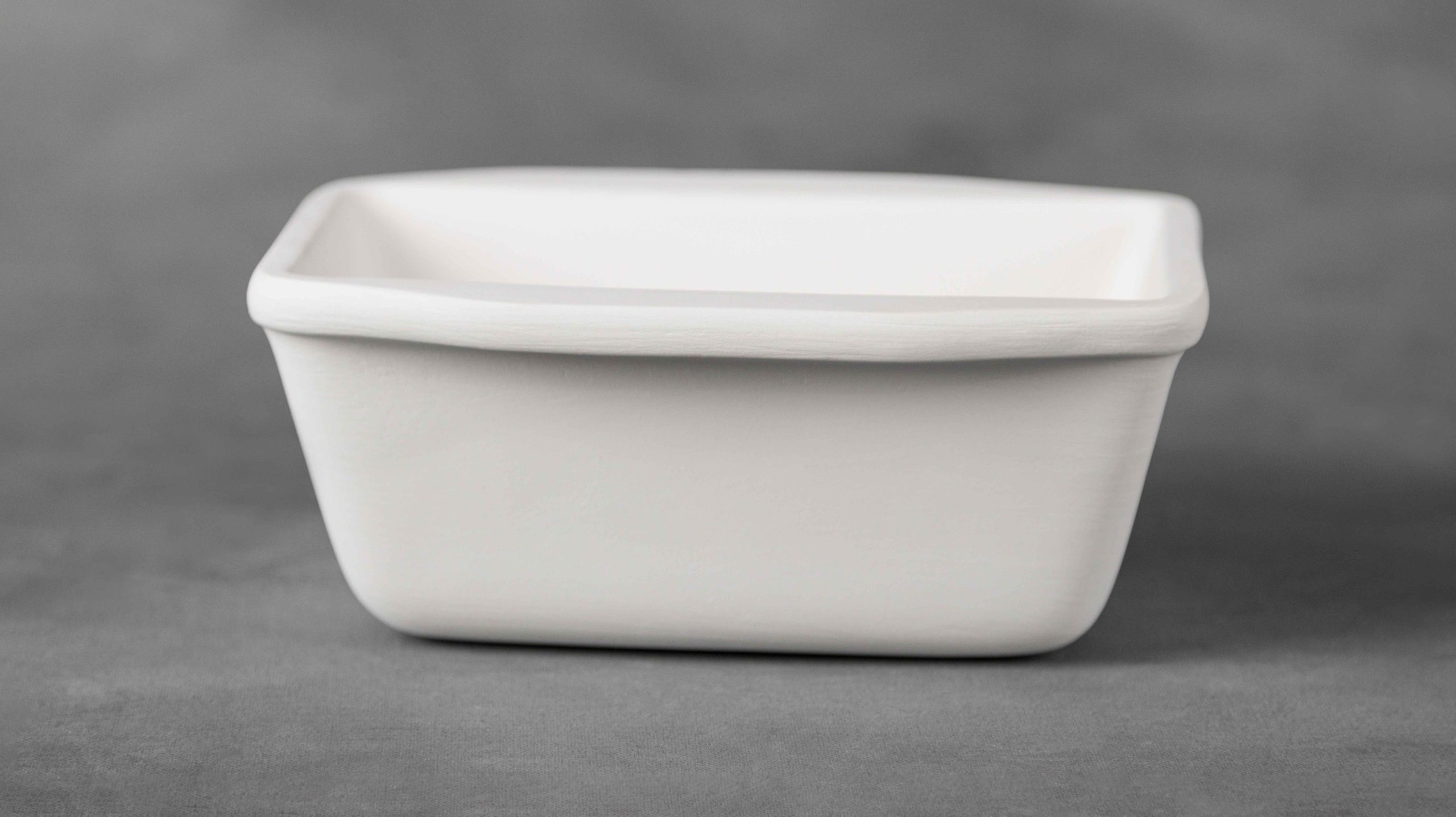 SB143 Stoneware Mini Loaf Pan All of our bisque is fired to a cone 04 and is ready to paint. Case of 6 6.75 L x 5.25 W x 3 H This item is unpainted. You are purchasing an unfinished, Ready to Paint, Piece of Ceramic Pottery