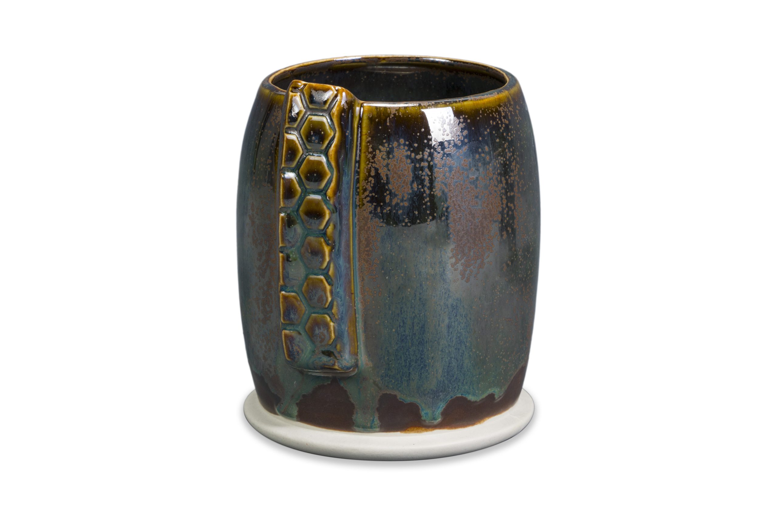 Our Stoneware glaze palette includes four glazes that contain small pieces of glass which create variegated color when fired. These glazes are beautiful by themselves, blending and pooling naturally over the clay form. Glaze shown here: SW-115 Midnight Rain.