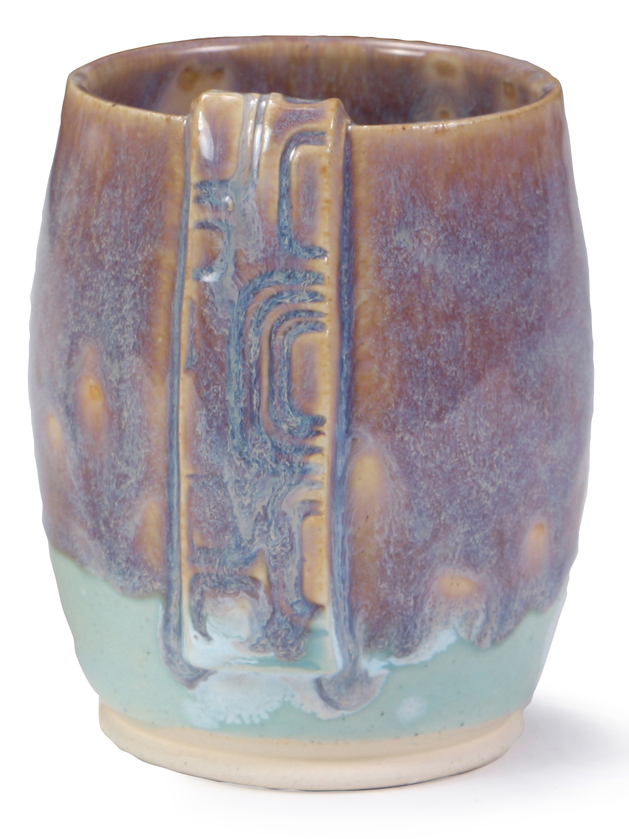 Our Stoneware glaze palette includes four glazes that contain small pieces of glass which create variegated color when fired. These glazes are beautiful by themselves, blending and pooling naturally over the clay form. Glaze shown here: SW-115 Midnight Rain.