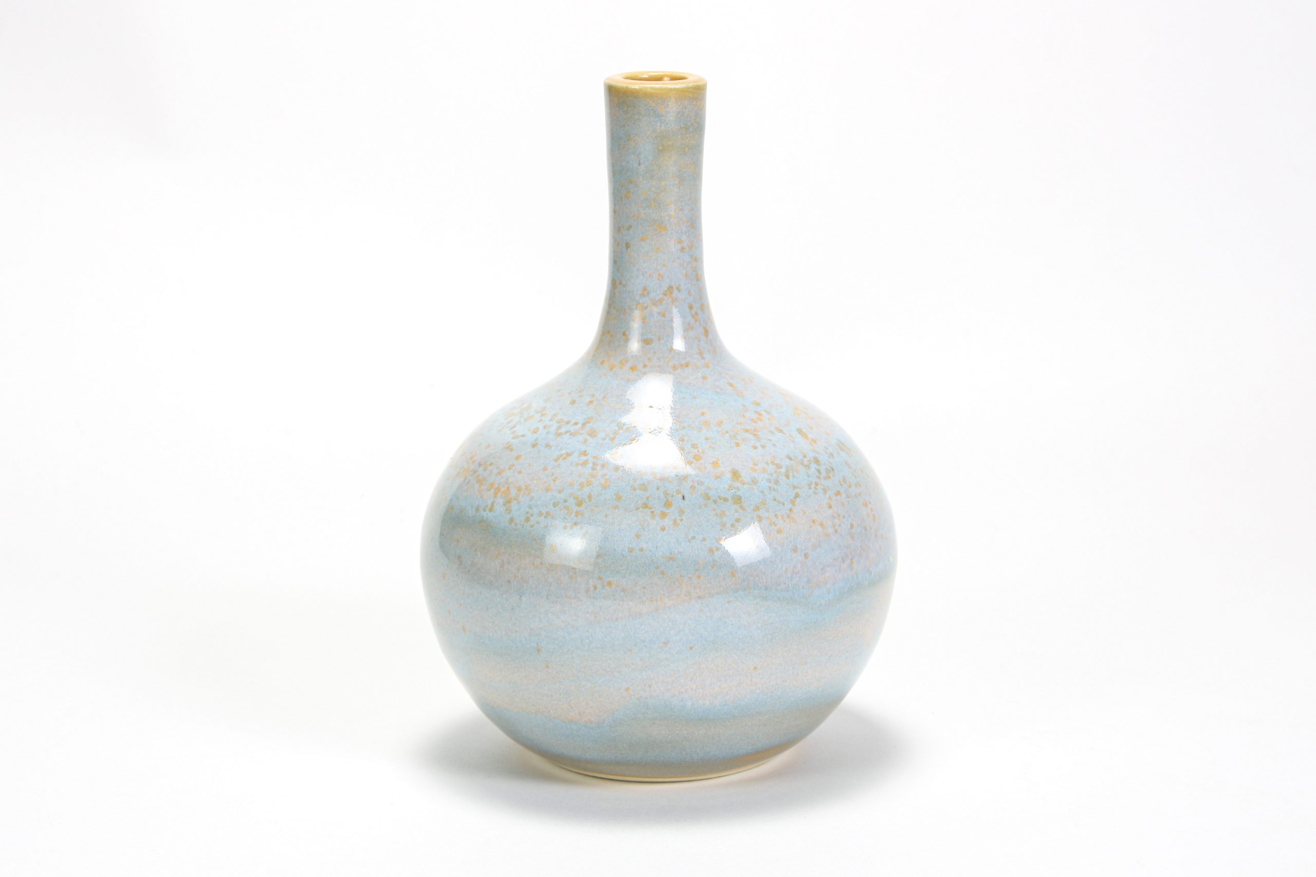 Our Stoneware glaze palette includes four glazes that contain small pieces of glass which create variegated color when fired. These glazes are beautiful by themselves, blending and pooling naturally over the clay form. Glaze shown here: SW-115 Midnight Rain.