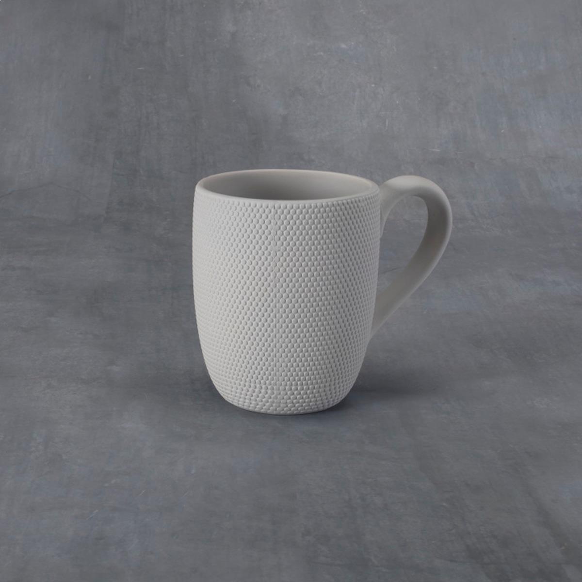 38264 Textured Bumps Mug in Ceramic Cone 04 Bisque By Duncan 14 ounce. All of our bisque is fired to a cone 04 and is ready to paint. 5.25 x 3.25 x 4.50 This item is unpainted. You are purchasing an unfinished, Ready to Paint, Piece of Ceramic Pottery
