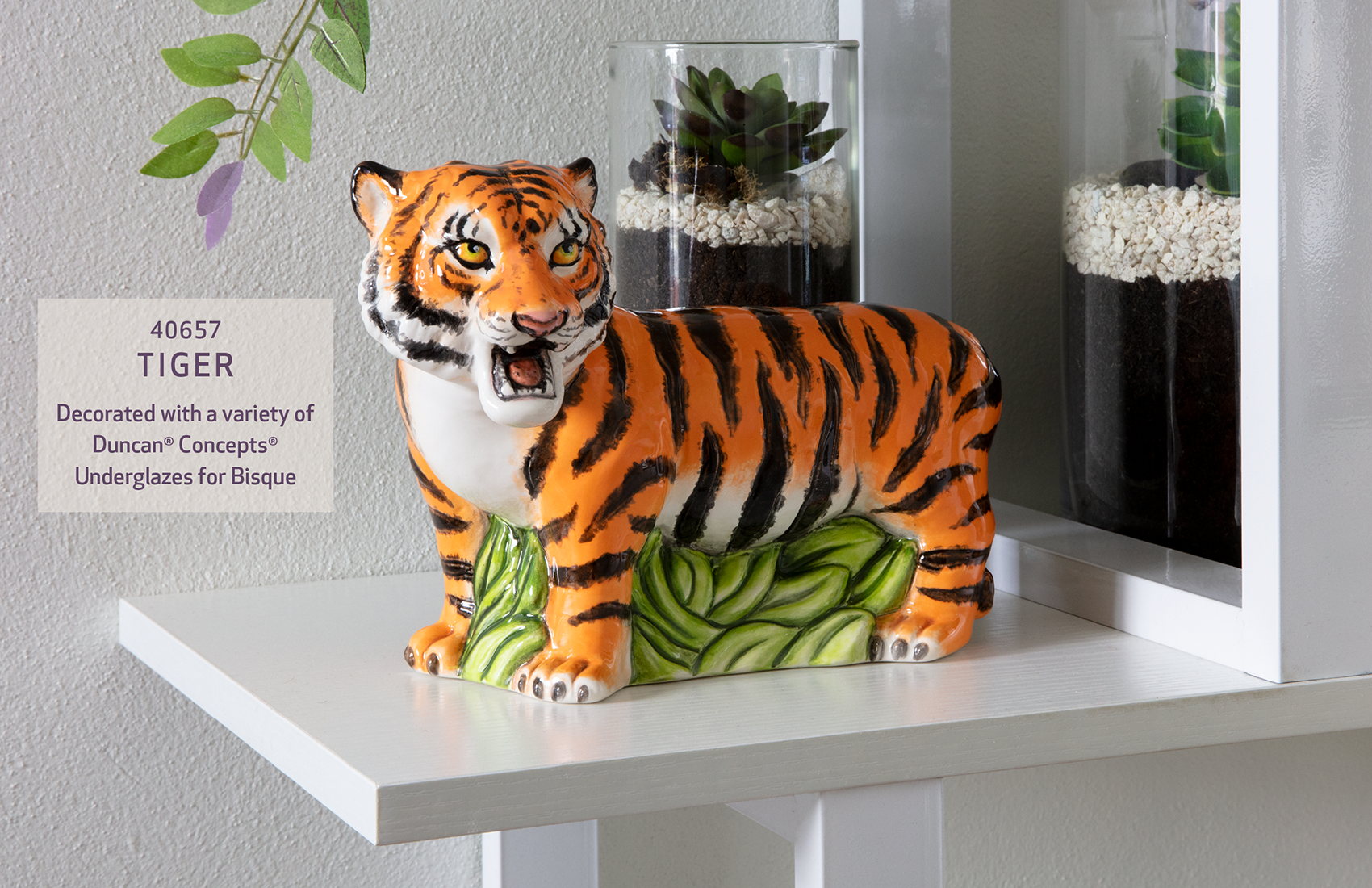 40657 Tiger in ready to paint, cone 04, ceramic bisque 9.25 x 4 x 6.25