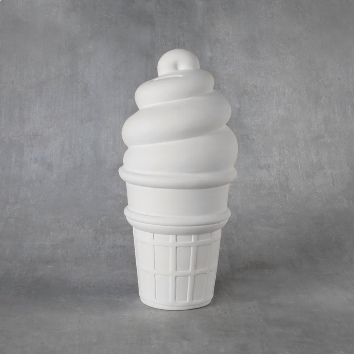 38179 XL Ice Cream Cone Bank in Ceramic Cone 04 Bisque By Duncan All of our bisque is fired to a cone 04 and is ready to paint. 5.5 x 5.5 x 11.75 This item is unpainted. You are purchasing an unfinished, Ready to Paint, Piece of Ceramic Pottery
